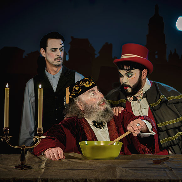 “The Ochre House team, which prides itself on its disregard for everyday logic, never lets an audience down when it comes to audacious visual puns, cleverly imagined sets, and the sheer energy of a skilled, energetic cast of actors and first-rate musicians.”